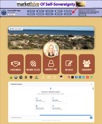 The Markethive SuperAI Assistant, accessed through the profile page toolbar.