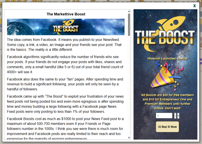 A key differentiator for Markethive is its commitment to sharing its success with its members through innovative loyalty programs. For instance, the Entrepreneur One upgrade is a premium offering that provides enhanced tools and benefits, including access to otherwise subscription-based vertical products, while also participating in a revenue-sharing model.